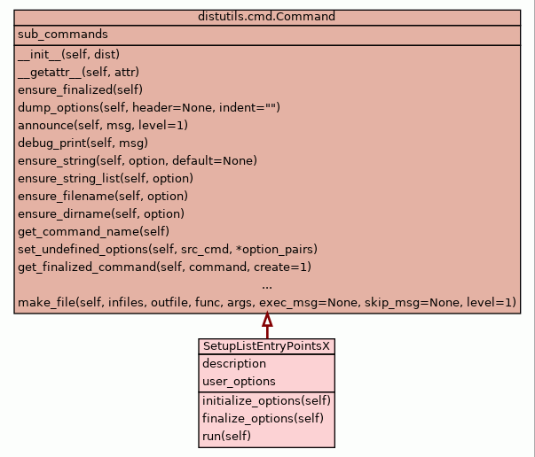 Define the API entrypoints and data of the command 'list'. REMARK: verbose and debug are encapsulated/hidden by distutils.